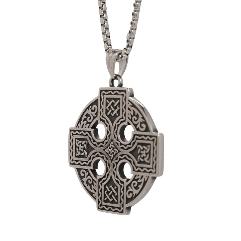 Celtic Cross Stainless Steel Pendant with genuine Connemara Marble gemstone.