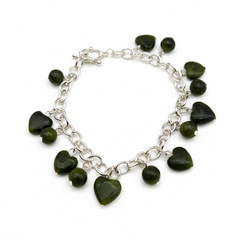 Connemara Marble Heart Charm Bracelet in Silver Tone.