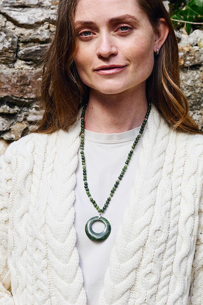 Connemara Marble is a rare form of marble found in Connemara Co. Galway in the West of Ireland and is the perfect gemstone for our luck stone necklace.