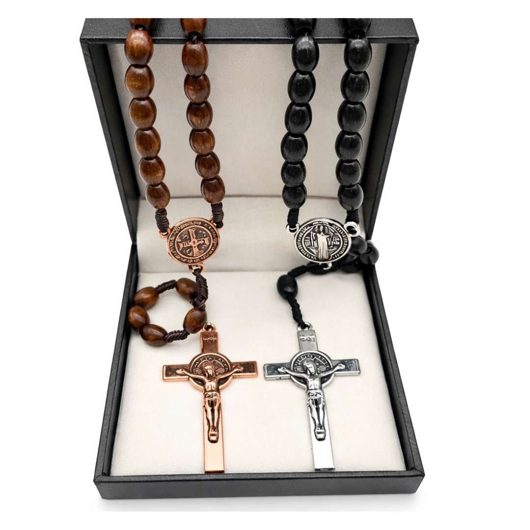 St. Benedict Irish Rosary Bead Set Brown and Black made in Ireland.