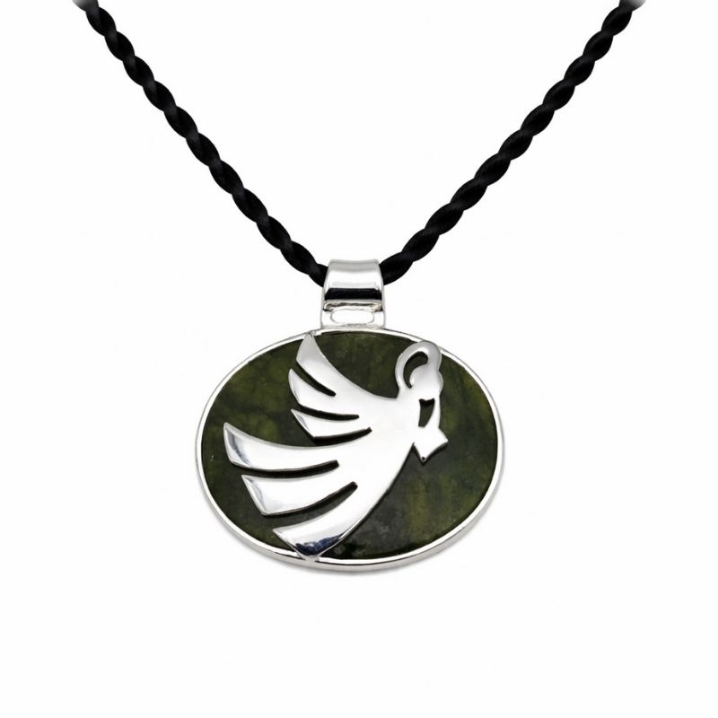 Our sterling silver angel pendant features genuine Connemara marble set within a polished oval frame.