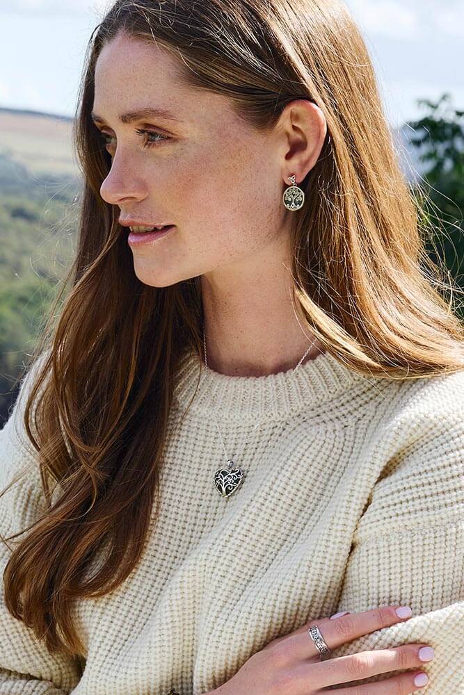 Handcrafted in Ireland, this hallmarked sterling-silver pendant features a heart-shaped piece of natural Connemara Marble delicately encased within the iconic Tree of Life. Intricate silverwork and a traditional Celtic rope design bring this meaningful piece together, celebrating love, strength, and eternity.