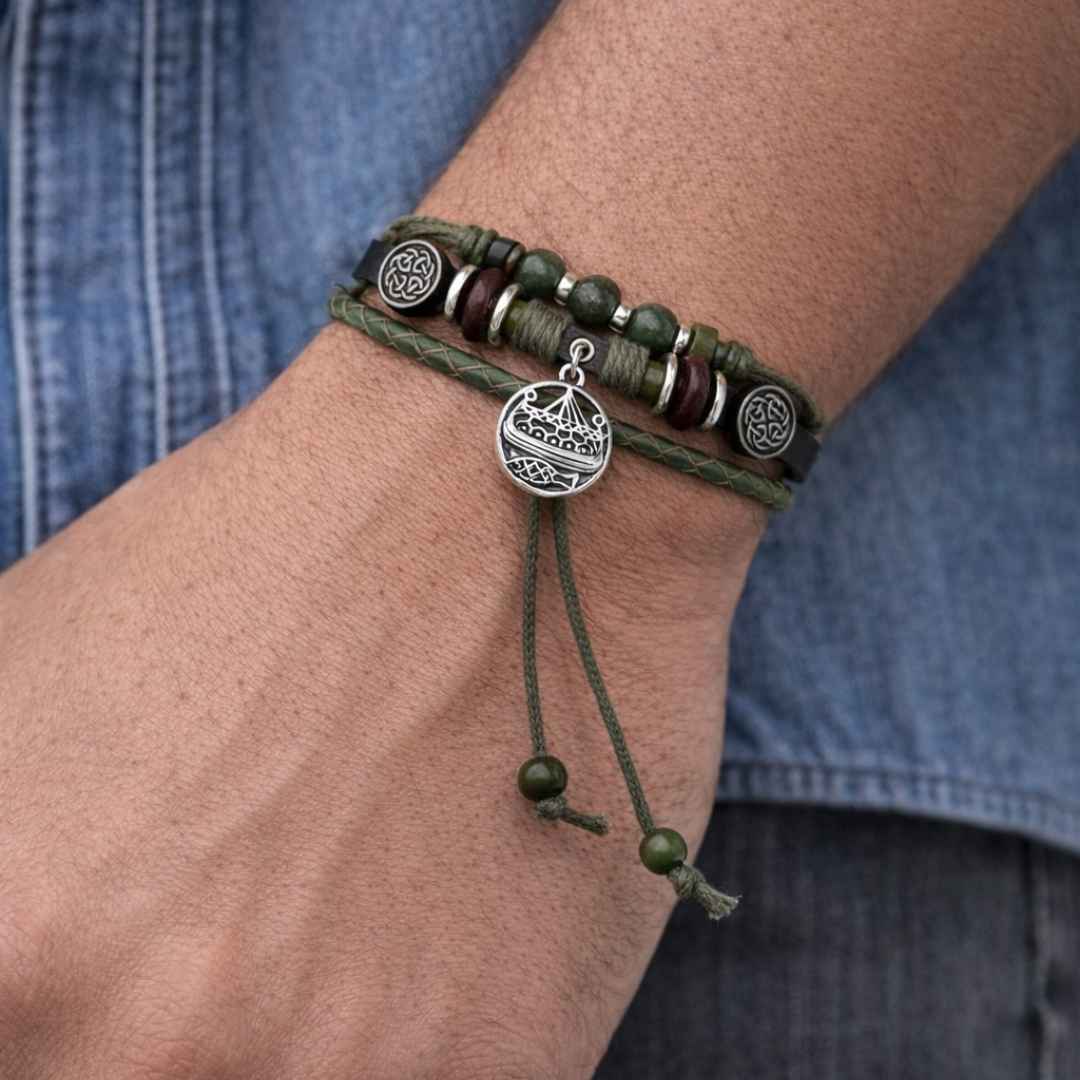 Fully adjustable, leather, handcrafted Hippie bracelet with Viking Charm.